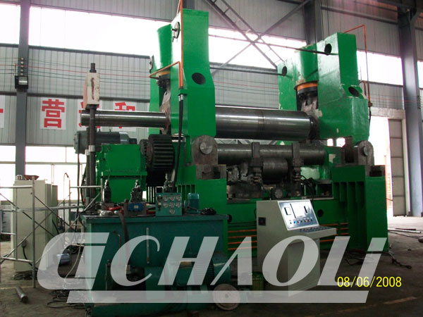 卷圓時(shí)通過(guò)電動(dòng)機(jī)、減速機(jī)帶動(dòng)兩下輥進(jìn)行。由于下輥的標(biāo)高不變,所以便于進(jìn)料和操作。