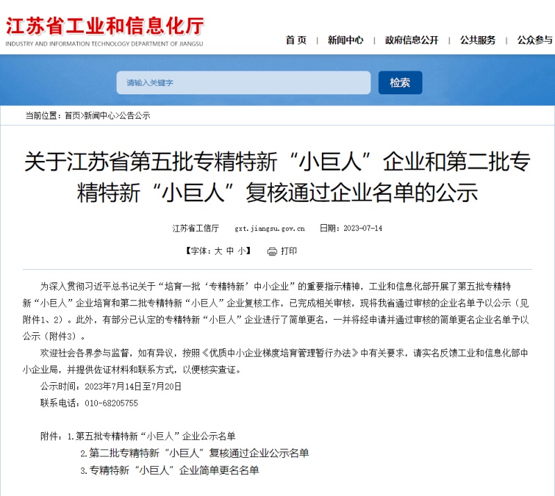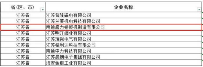 近日,江蘇省工信廳發(fā)布《關(guān)于江蘇省第五批專精特新“小巨人”企業(yè)和第二批專精特新“小巨人”復(fù)核通過(guò)企業(yè)名單的公示》。我們南通超力卷板機(jī)制造有限公司上榜第五批國(guó)家級(jí)專精特新“小巨人”企業(yè)名單。