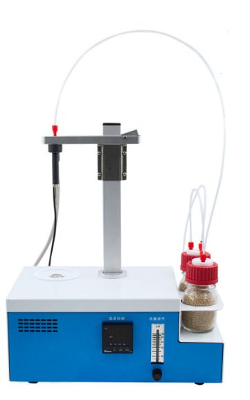 - 操作方便,用戶只需要設(shè)置合適的溫度,合適的流量,把樣品放入事先準(zhǔn)備好的樣品瓶,放入加熱器,然后把傳輸針扎入樣品瓶的硅膠墊,在儀器上點(diǎn)開始測量即可。