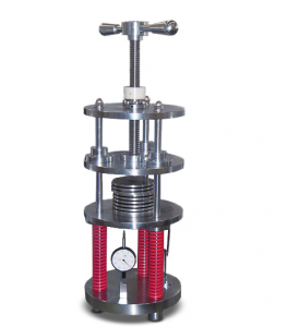 壓縮回彈試驗機用於測試橡膠制品在承受一定的時間及壓力後之回彈性能。取標(biāo)準(zhǔn)試片,分布平放於試盤上,夾於本坲兩板之間,經(jīng)規(guī)定之時間後取出,釋放試片并冷卻後,分別量測試片最終之中心厚度,代入公式求其壓縮回彈率。滿足標(biāo)準(zhǔn): FIA304,SATRA-PM64等標(biāo)準(zhǔn)要求。