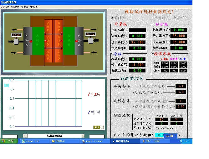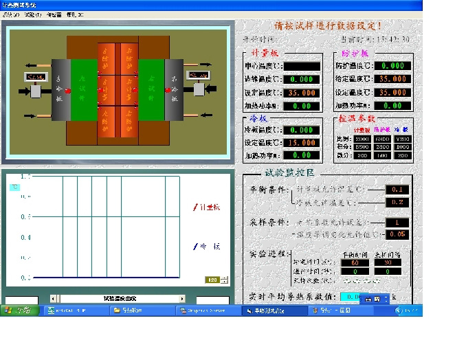 - 連接好微機(jī)系統(tǒng),接通電源,啟動(dòng)電腦進(jìn)入WinXP操作系統(tǒng),雙擊“導(dǎo)熱系數(shù)”圖標(biāo)進(jìn)入自動(dòng)控制系統(tǒng)。