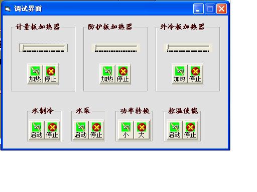 計(jì)算機(jī)輸出信號(hào)經(jīng)I/O和D/A轉(zhuǎn)換控制相應(yīng)執(zhí)行元件,實(shí)現(xiàn)控溫、計(jì)算、溫度采集、打印測(cè)試報(bào)告、顯示過(guò)程曲線等功能。人機(jī)對(duì)話窗口顯示各面溫度值,并具備自診斷功能。